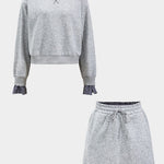 Das Elsa Zweiteiler-Set vereint sportlichen Komfort mit modischem Charme. Der weiche Sweatstoff sorgt für ein angenehmes Tragegefühl, während die karierten Details an den Ärmelenden und am Bund des Rocks raffinierte Akzente setzen. Das locker geschnittene Sweatshirt harmoniert perfekt mit dem bequemen Rock mit Kordelzug – ein stilvolles und dennoch gemütliches Outfit für den Alltag.