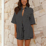 Schlüpfe in mühelose Eleganz mit diesem Friede Lässiges Gestreiftes Mini-Hemdkleid, das für einen entspannten, aber stilvollen Look entworfen wurde. Mit seiner lockeren Passform ist dieses leichte und atmungsaktive Kleid perfekt für lässige Ausflüge, Strandtage oder Urlaubsoutfits. Die halblangen Ärmel und der Kragen verleihen ihm einen Hauch von Raffinesse und machen es zu einem vielseitigen Kleidungsstück für jede Gelegenheit.