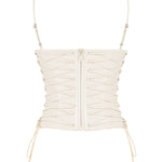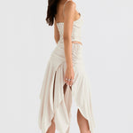 Karla | Weißes veganes Lederkorsett mit drapiertem Midirock für Frauen