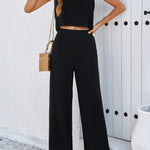 Upgrade deinen Kleiderschrank mit diesem Lya Chic Ärmellosen Jumpsuit für moderne Eleganz und mühelosen Stil. Mit einem schmeichelhaften Quadrat-Ausschnitt, einem lockeren Overlay-Oberteil und weiten Beinen ist dieser Jumpsuit perfekt für Freizeit-Ausflüge, Abendveranstaltungen oder Sommerurlaube.