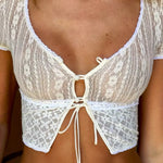 • Romantisches Design – Das zarte Spitzen-Top mit Schnürung verleiht dem Look eine verspielte, feminine Note.