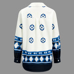 Das Zahara Boho-Zweiteiler-Set vereint lässige Eleganz mit einem Hauch von Ethno-Charme. Die locker geschnittene Bluse mit Knopfleiste und klassischem Kragen kann offen oder geknotet getragen werden, während die fließende Hose mit elastischem Bund für höchsten Tragekomfort sorgt. Das stilvolle Muster in Blau- und Cremetönen verleiht dem Set eine besondere Note und macht es perfekt für entspannte Sommerlooks, Urlaub oder stylische City-Outfits.