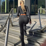 Dieser figurbetonte Zweiteiler vereint Eleganz mit modernem Streetstyle. Das langärmlige Crop Top mit Rundhalsausschnitt betont die Taille, während die hochgeschnittene Hose mit geradem Bein für einen schlanken Look sorgt. Ob in Schwarz, Blau oder Braun – dieses Set ist perfekt für Partys, Ausgehen oder trendige Alltagslooks.