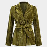1. Luxuriöses Material: Der glänzende Samt verleiht der Jacke eine edle und raffinierte Ausstrahlung.