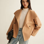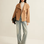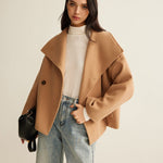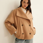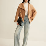 Der Camel Mantel verbindet schlichte Eleganz mit einer modernen Silhouette. Seine warme Kamel-Farbe und die kürzere, cropped Länge machen ihn zu einem vielseitigen Begleiter für den Herbst und Winter.