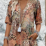 Dieses knielange Sommerkleid mit V-Ausschnitt bietet stilvolle Leichtigkeit für modebewusste Frauen jeden Alters. Der luftige Schnitt, das farbenfrohe Muster und die praktischen Seitentaschen machen es zum idealen Begleiter für Urlaub, Alltag und Freizeit.