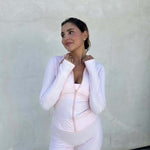 Diese Damen Sportjacke in zartem Rosa ist der ideale Begleiter für Fitness, Yoga, Pilates oder Freizeit. Dank ihres leichten, atmungsaktiven Materials bietet sie hohen Tragekomfort und Bewegungsfreiheit. Die Jacke verfügt über einen praktischen Frontreißverschluss sowie eine figurbetonte Passform, die den sportlich-eleganten Look unterstreicht.
