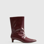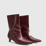 Diese Stiefeletten in Bordeaux-Rot vereinen klassische Eleganz mit modernem Design. Der glänzende Lederlook und die spitze Zehenpartie sorgen für einen edlen Auftritt, während der niedrige Absatz für angenehmen Tragekomfort sorgt. Perfekt für stilbewusste Frauen, die Komfort und Eleganz kombinieren möchten.