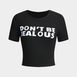 Braelyn | Schwarz Kurzärmelig Cropped T-Shirt mit "Don't Be Jealous"-Print