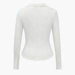 Dominique | Figurbetontes Langarm-Poloshirt mit tiefem V-Ausschnitt und eleganten Knopfdetails