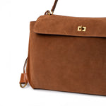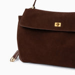 Clara – Elegante Damenhandtasche aus dunkelbraunem Wildleder mit goldfarbenem Drehverschluss