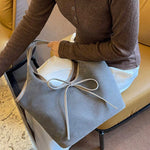Diese stilvolle Damen-Tasche vereint Eleganz und Funktionalität und ist der ideale Begleiter für jeden Anlass. Erhältlich in den zeitlosen Farben Weinrot, Grau, Schwarz und Braun, ergänzt sie mühelos jedes Outfit – ob für den Alltag, das Büro oder besondere Events. Das weiche, samtige Material und die feine Schleifenverzierung machen diese Tasche zu einem echten Blickfang.