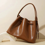 Verleihen Sie Ihrer Accessoire-Sammlung eine moderne Note mit dieser Friederike Glossy Drawstring Handtasche. Mit einer schlanken Silhouette, einem sicheren Zugbandverschluss und einem eleganten, geknoteten Handgriff ist diese Tasche perfekt für sowohl legere Ausflüge als auch gehobene Outfits. Ihr geräumiges Innenfach sorgt dafür, dass Sie all Ihre Essentials stilvoll verstauen können.