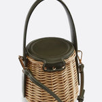 Noa | Runde Rattan-Handtasche mit Kunstledergriff & abnehmbarem Schulterriemen