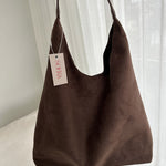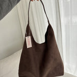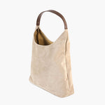 Diese elegante Schultertasche aus hochwertigem Wildleder verleiht jedem Outfit eine subtile und zeitlose Raffinesse.