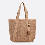 Sienna | Große Strohtasche mit Reißverschluss & Schulterriemen – Sommerliche Damen-Tote Bag mit Innentasche & Deko-Quaste