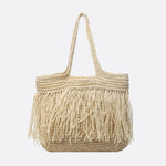 Sola | Große Strohtasche mit Fransen & Reißverschluss – Schulter-Tote Bag