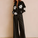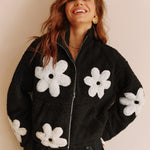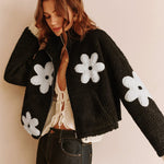 Mach dich bereit für kuschelige Vibes mit unserer schwarzen Teddyjacke mit verspieltem Blumenmuster. Der flauschige Teddy-Stoff sorgt für Wärme und Komfort, während die kontrastierenden weißen Blumen deinem Look eine trendige, verspielte Note verleihen.