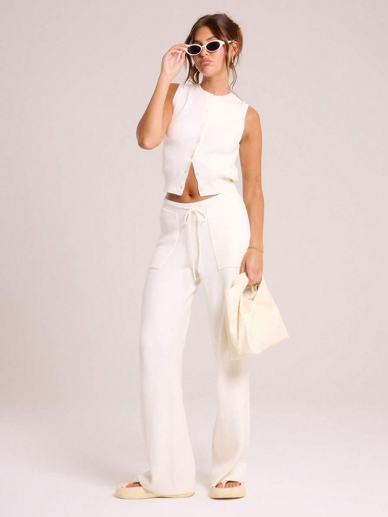 Gestricktes Cropped Top mit Knopfleiste – Minimalistisch, Weich & Kombistark