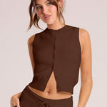 Dieses ärmellose Top ist das perfekte Basic für stilbewusste Layering-Looks. Der weiche Feinstrick sorgt für angenehmen Tragekomfort, während die Knopfleiste und der leicht gecroppte Schnitt für eine moderne, cleane Linie sorgen. Ob solo oder über einem Shirt – dieses Piece ist so vielseitig wie zeitlos.