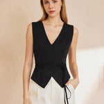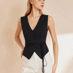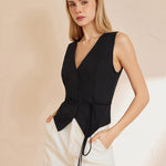 Isabella | Schwarzes ärmelloses Top mit Taillenbindung – Zeitlose Eleganz für jeden Anlass